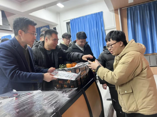 随后,大会进入暖心环节。学院领导班子依次为在场考研学子发放精心筹备的“考研暖心大礼包”与寓意“心想事成”的新鲜橙子。学子们双手接过礼包与橙子,脸上洋溢着感动与欣喜的笑容,现场掌声阵阵、暖意融融。大家纷纷表示,将牢记学院的嘱托与期望,把这份关怀转化为备考冲刺的强大动力,不负韶华、不负栽培,在考场上全力以赴、争创佳绩。